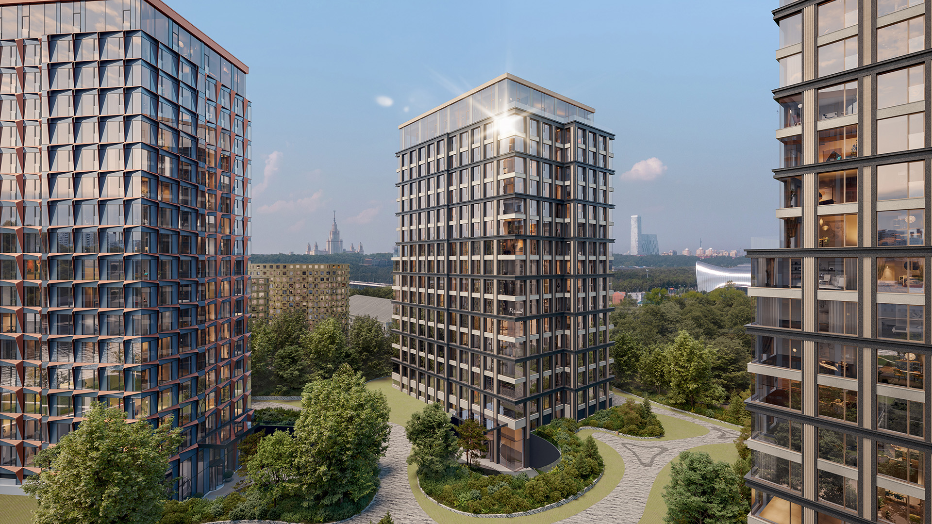 Архитектурную концепцию разработали международные бюро Dyer (Великобритания) и MVRDV (Нидерланды). Дома расположены на максимальном удалении друг от друга — расстояние достигает 88 метров, что обеспечивает высокий уровень приватности и панорамные виды не только у корпусов первой линии, но и у резиденций, выходящих в тенистый парк.