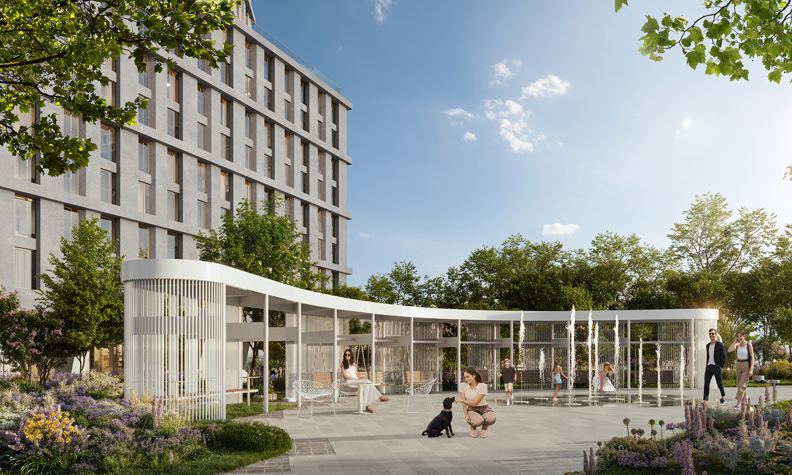 Главной точкой притяжения для жителей станет площадь с фонтаном, которая открывается сразу двум входным группам.