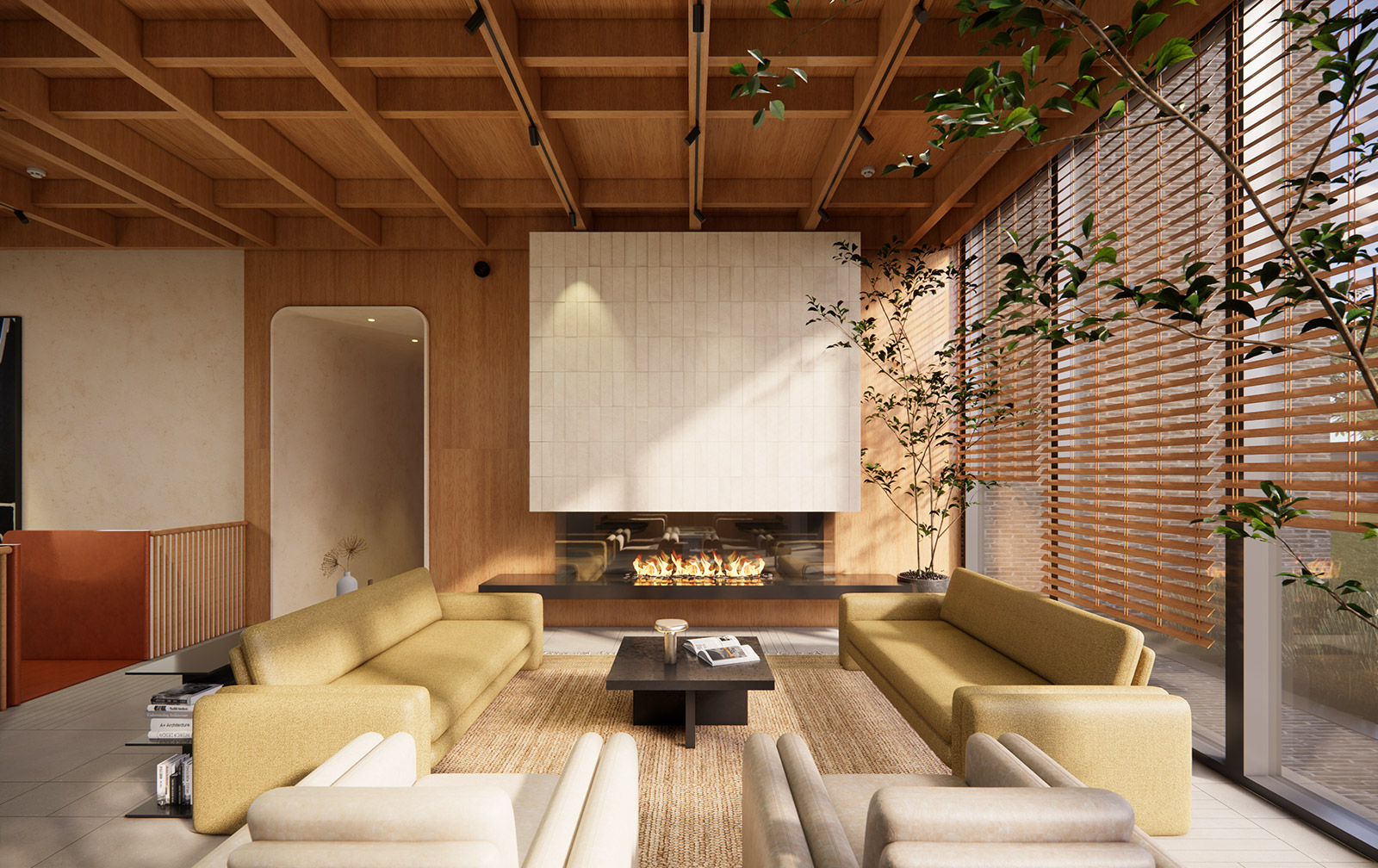 Лобби в квартале МИРА – это атмосфера спокойствия и размеренности. Концепция воплощает в себе гармоничный переход от внешнего мира к внутреннему, соответствуя общей идее проекта.
