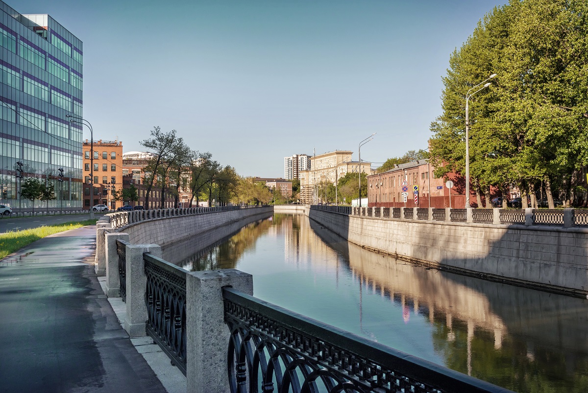 Прогуливаясь по набережной Яузы, можно любоваться природой, медитировать и просто отдыхать от городского шума.