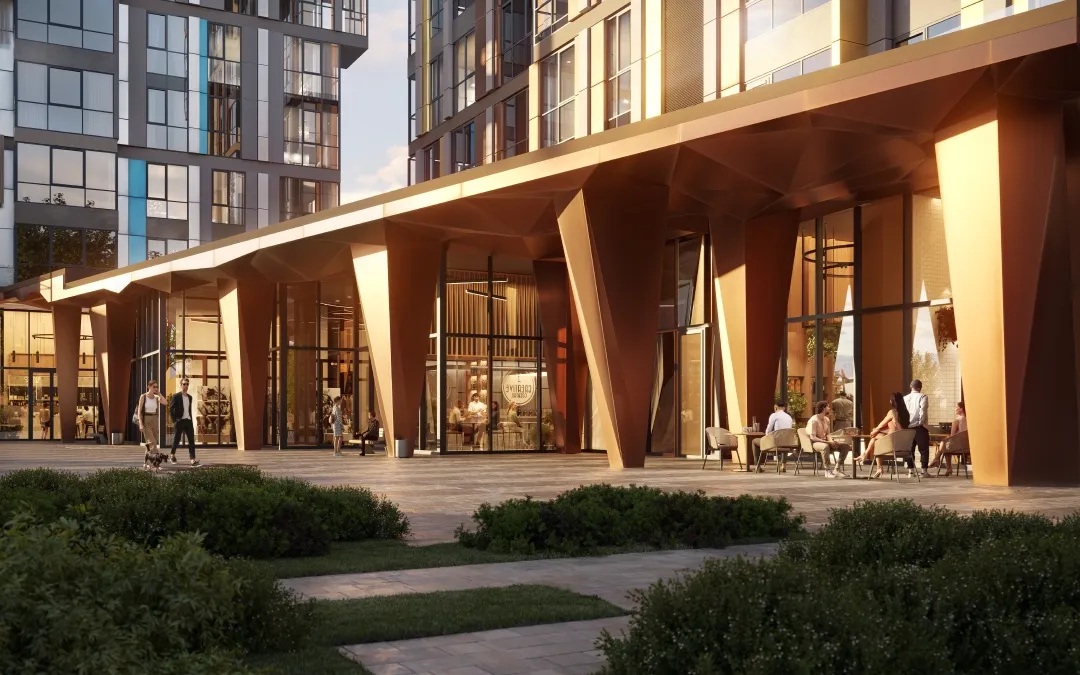 Закрытая благоустроенная территория комплекса включает авторское ландшафтное оформление, дизайнерские лобби с потолками 7 метров и круглосуточную ресепшен-службу. Для жителей предусмотрены подземный паркинг с контролем доступа, хобби-комната, event-пространство для частных мероприятий, кафе, экомаркет и собственный детский сад на 40 мест.