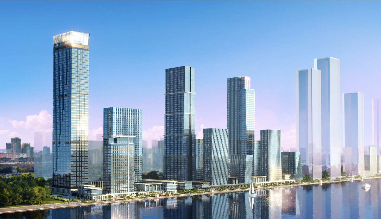 Проект реализуется в несколько очередей и включает жилые корпуса переменной этажности до 58 этажей. Шахматное расположение зданий обеспечивает виды на воду, парки и внутренние дворы практически из каждой квартиры. Высота потолков — от 3,15 до 3,3 м, в продаже представлены квартиры площадью от 28 до 135 м² — от студий до просторных семейных форматов.