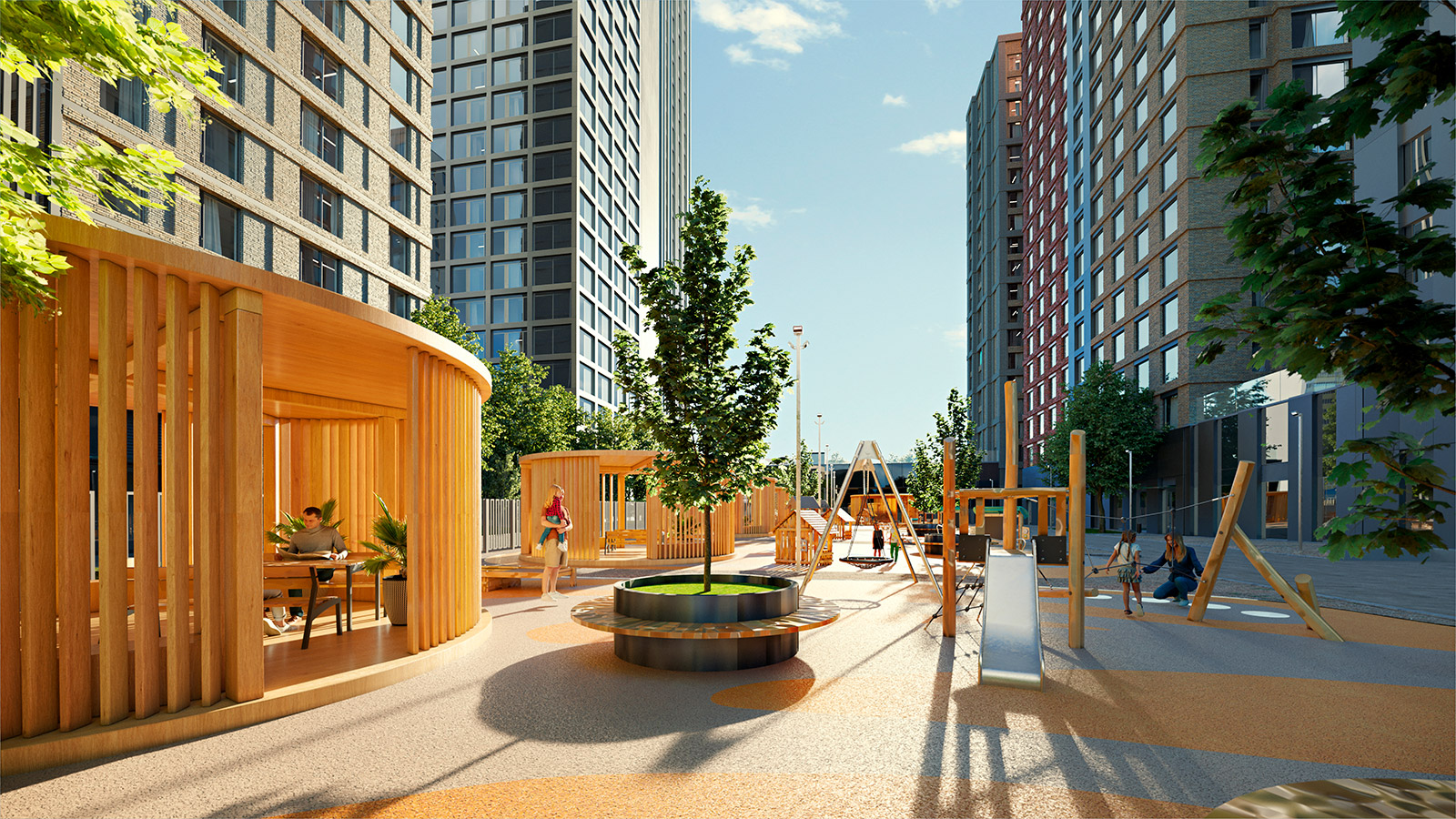 В этом прибрежном квартале благоустройство органично продолжает идею жизни в гармонии с природой, превращая каждый день в особенное событие. Во дворе вас ждёт собственный парк с прогулочными аллеями, площадками для отдыха и пространствами для занятий спортом.