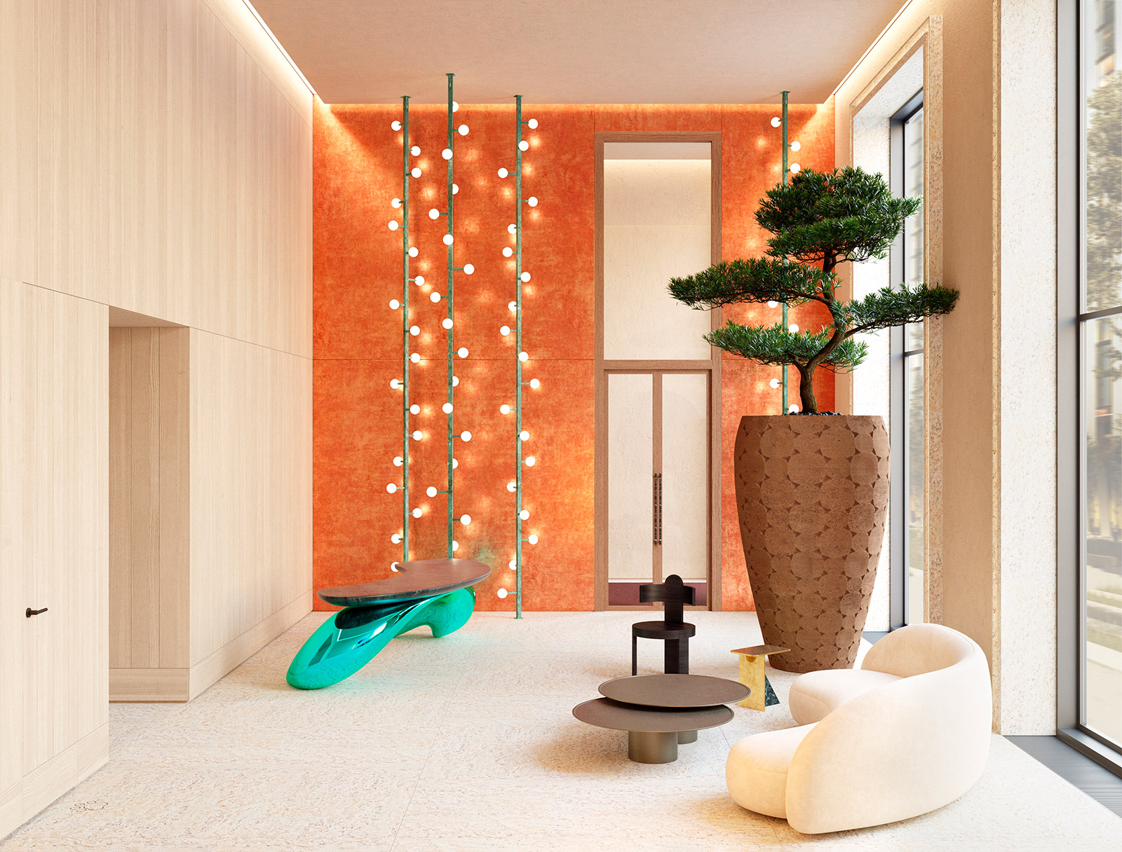 Вдохновляясь красотой природы, дизайнеры создали тёплые и выразительные пространства, где каждая деталь продумана до мелочей — от смелых, авторских форм мебели до естественной гармонии живых растений.