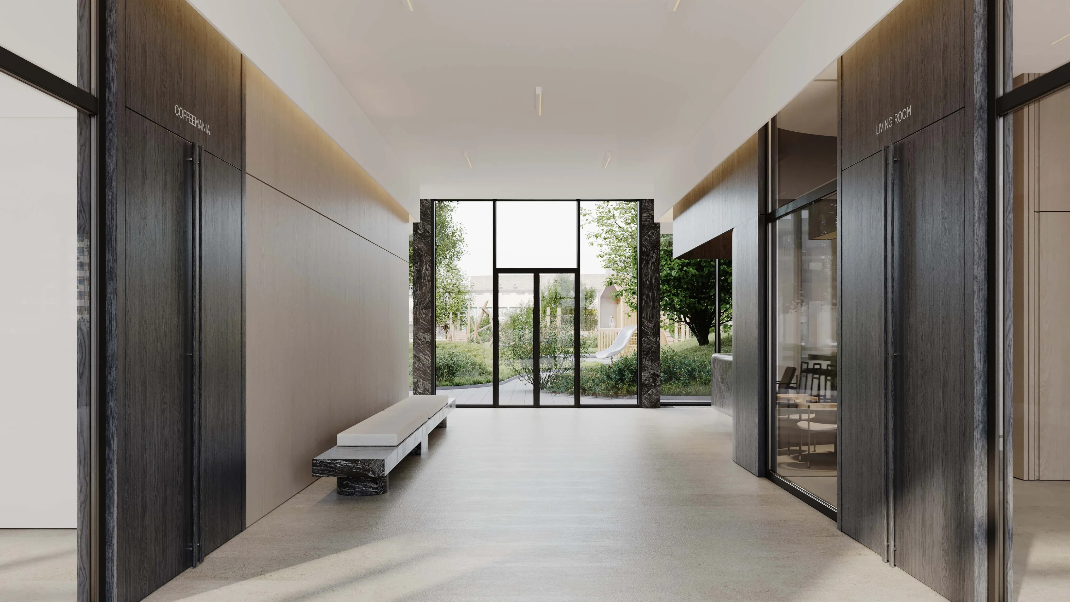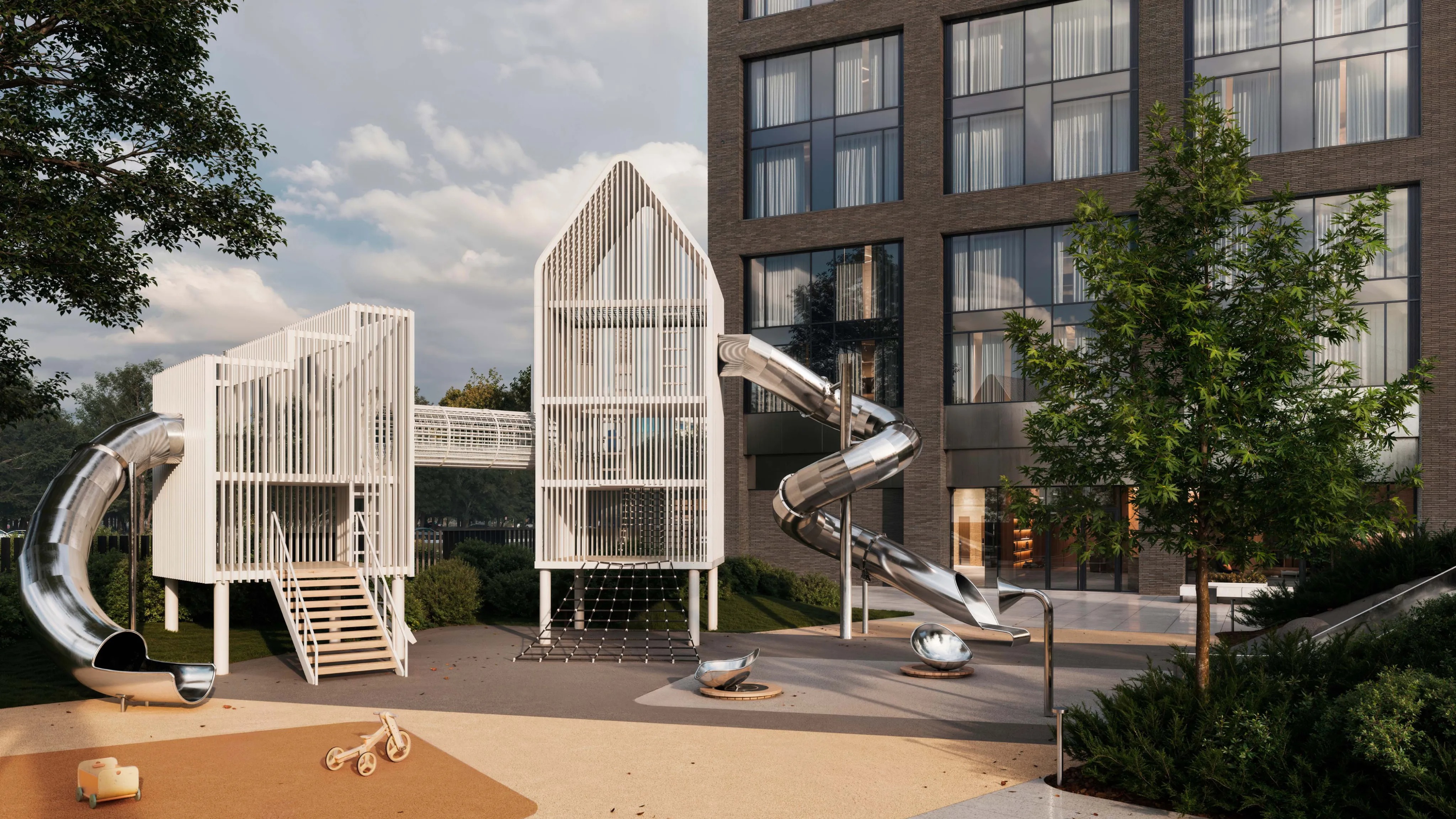 Закрытая благоустроенная территория формирует приватное пространство для жителей. В комплексе предусмотрены дизайнерские лобби, общественные зоны с кафе и бизнес-гостиной, а также коммерческие помещения на первых этажах.